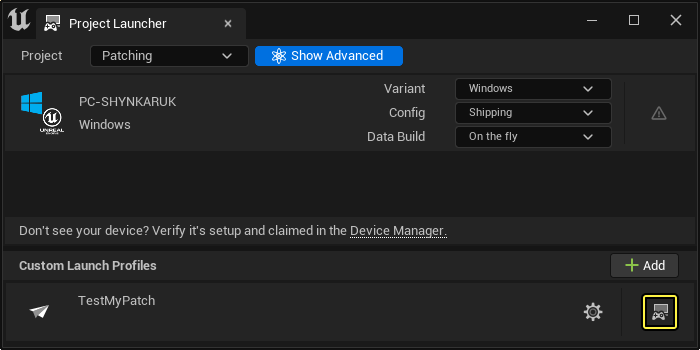 Reference capture from Epic patch documentation showing the custom launcher profile start point.